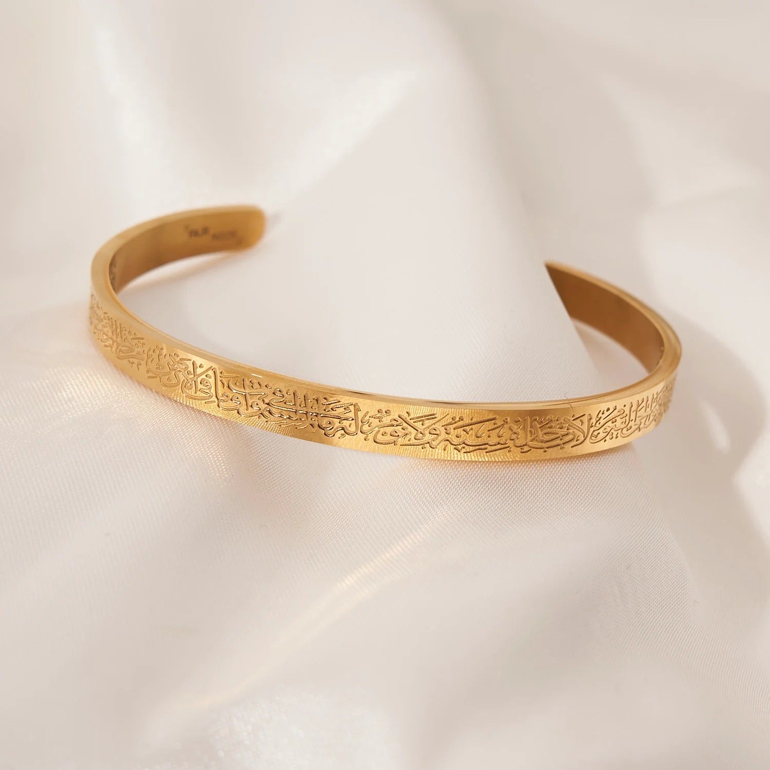- EXCELLENT PROCESS: Each Islamic bracelet is polished multiple times with elegant edges to avoid scratching your wrist, shiny surface and easy to read writing, very nice finish, elegant appearance, large but lightweight and comfortable for daily wear.